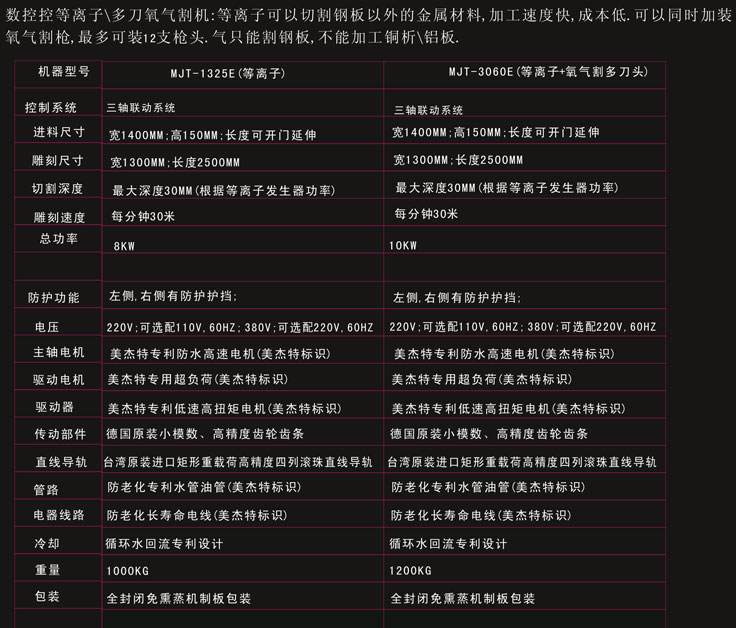 • 數(shù)控控等離子\多刀氧氣割機:等離子可以切割鋼板以外的金屬材料,加工速度快,成本低,可以同時加裝氧氣割槍,最多可裝12支槍頭,氣只能割鋼板,不能加工銅析\鋁板